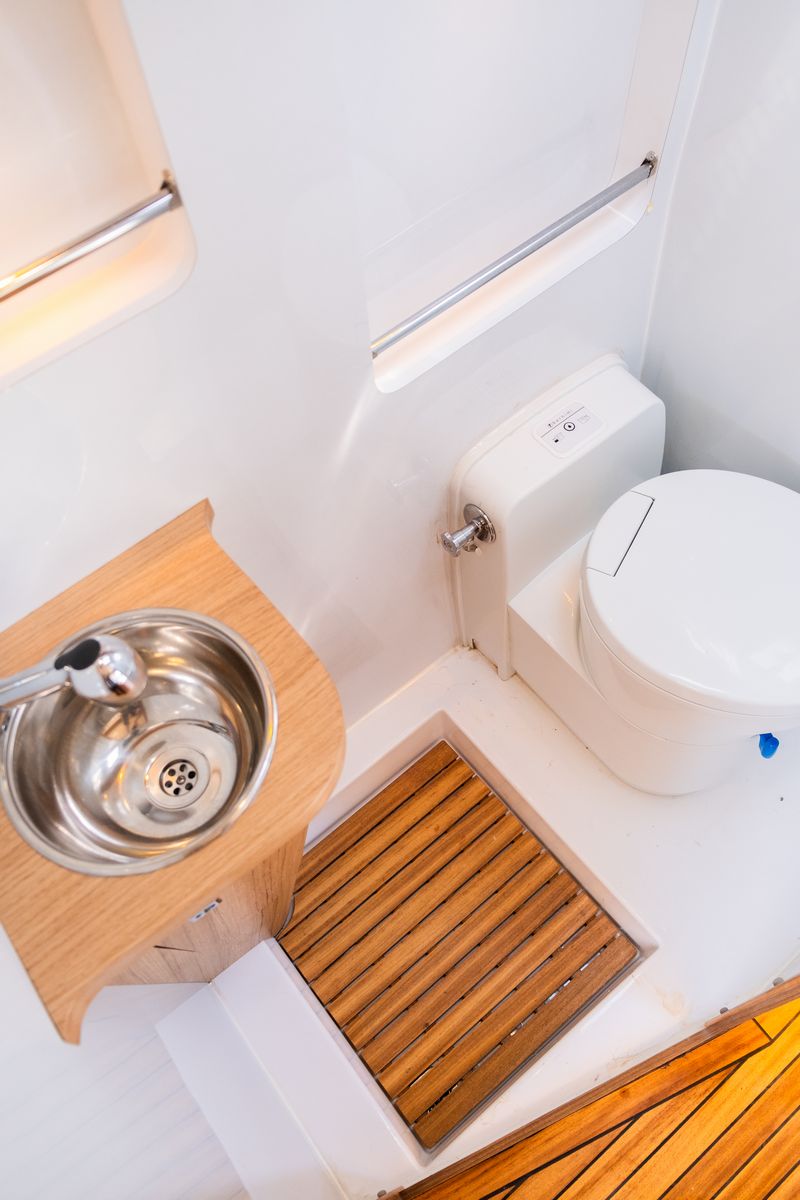 - Yat tasarımı mobilyalar ve dayanıklı teak zemin ile lüks bir iç mekân deneyimi.